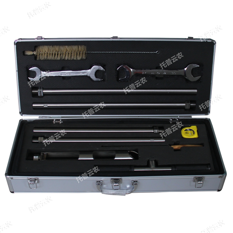 鋁箱內配置包括:一把刷子、兩把扳手、一個三米卷尺、一個刮刀、一個手柄、一個取土頭、4根接管。